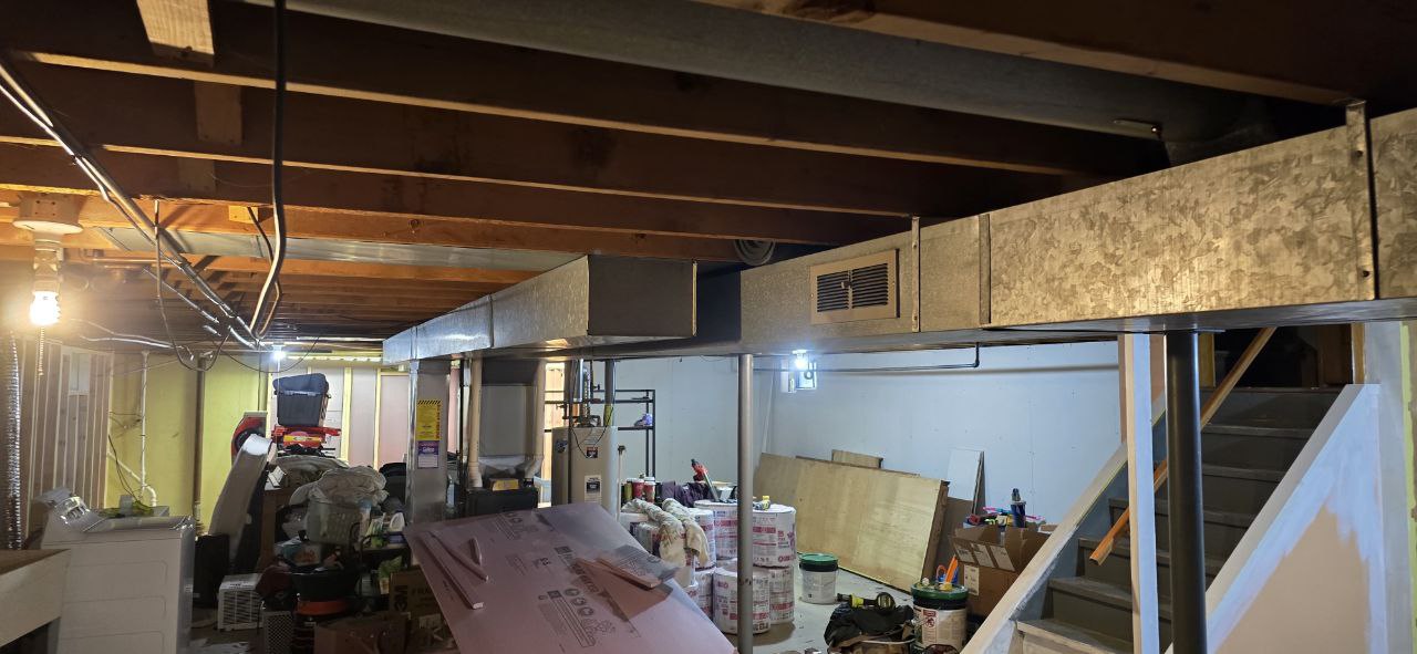 Complete basement finishing project including framing, insulation, drywall, flooring, and electrical. All licensed trade work performed by licensed electricians and plumbers in compliance with New York State building codes.